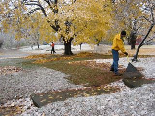 10K race in the freezing rain and Arctic winds and won his age group so he brought home $75! Corey went for a run a little later when the rain had turned to snow and I wimped out and ran and rowed on the machines at the gym! We all got home about the same time and raked some leaves into piles as the snow was falling.